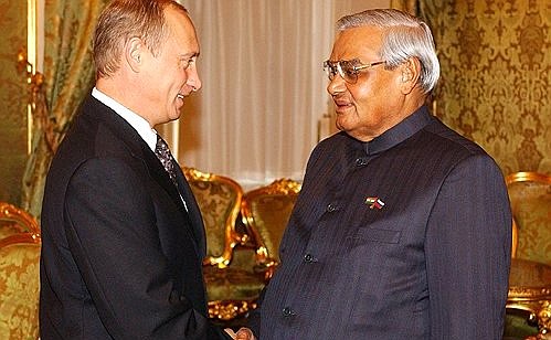 Atal Bihari Vajpayee with Russian president Vladimir Putin in 2001.