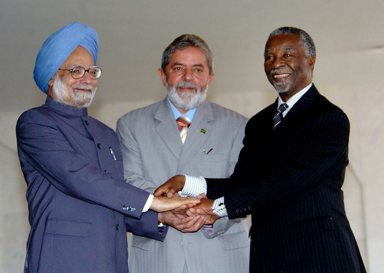 From left to right: Manmohan Singh of India, Luiz Inácio Lula da Silva of Brazil,